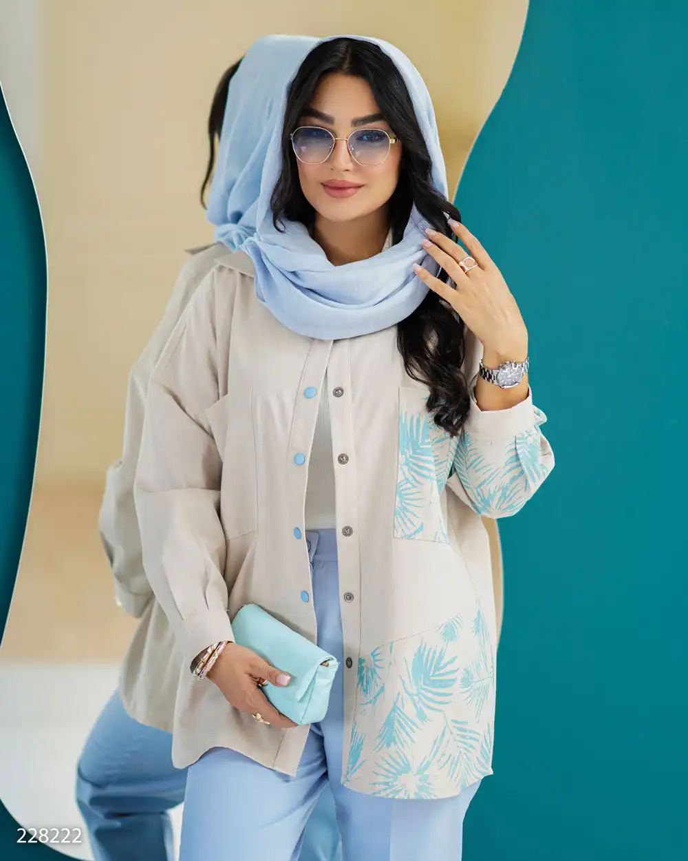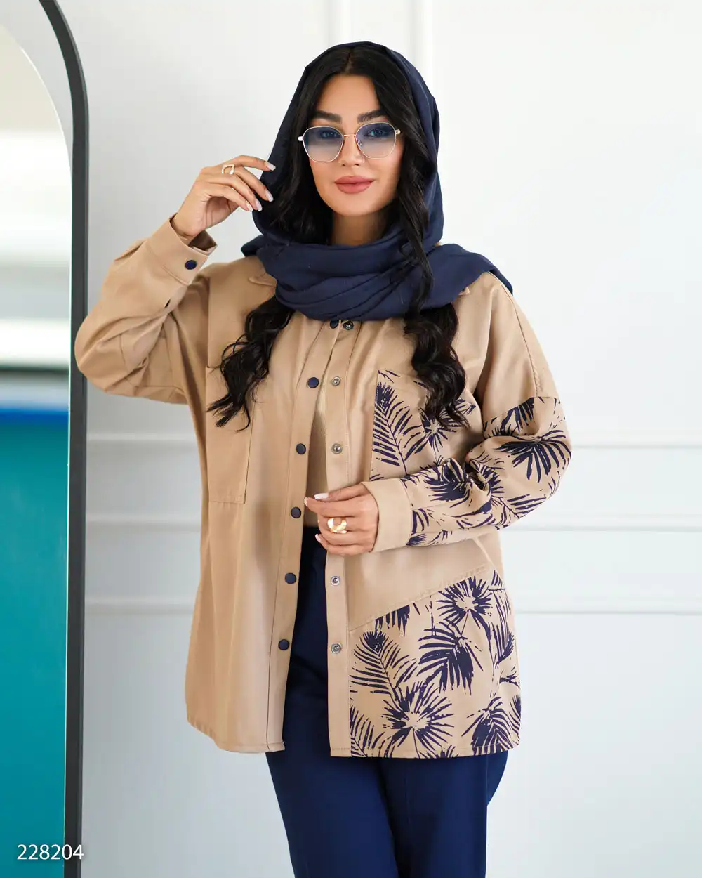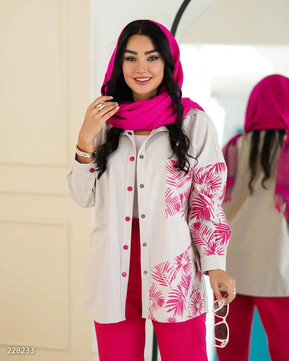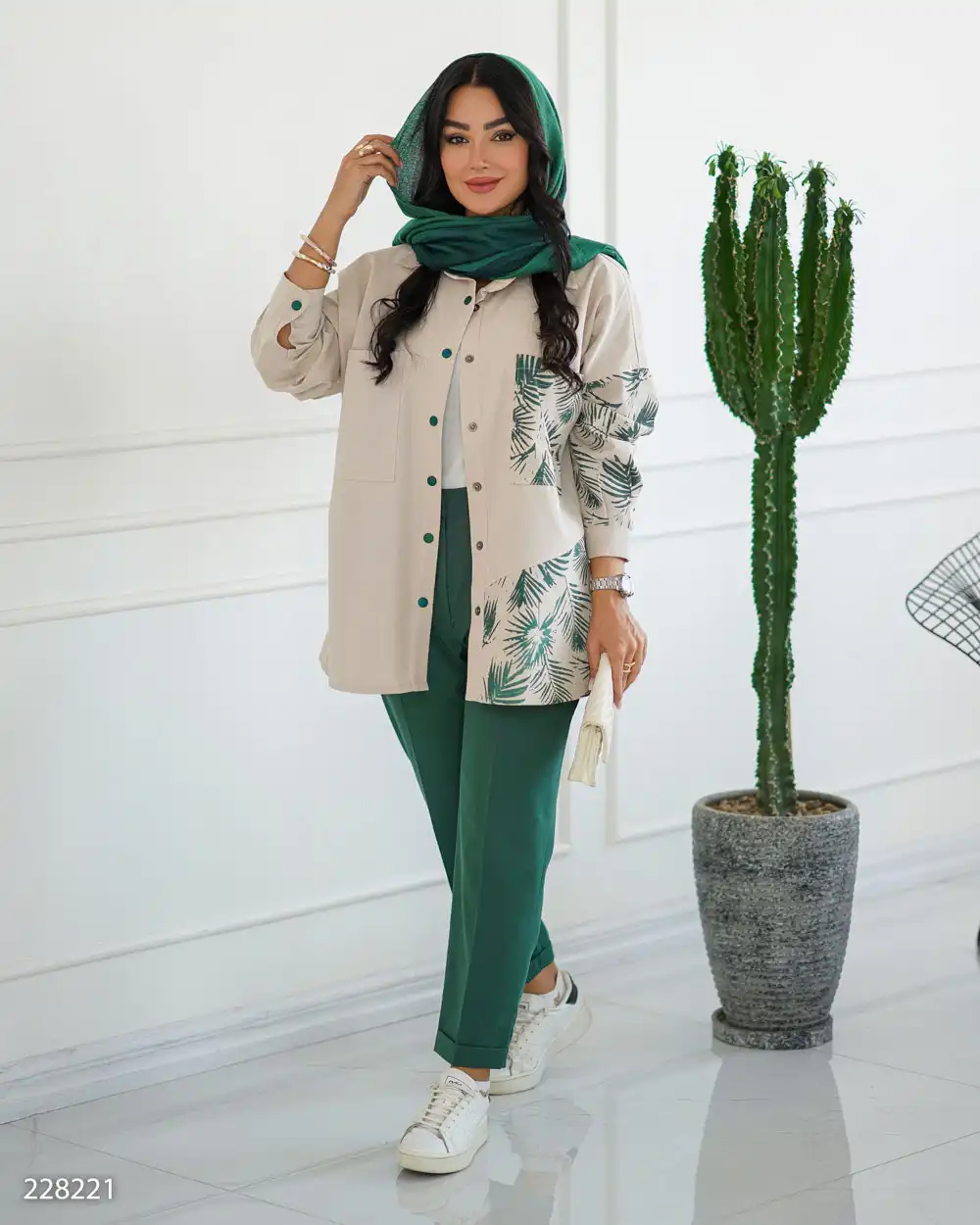 مانتو و شلوار جدید ۱۴۰۴مدل نیکا چهار دکمه جیب کاربردی زیپ و دکمه پشت کمر کش در دو سایز و چند رنگ