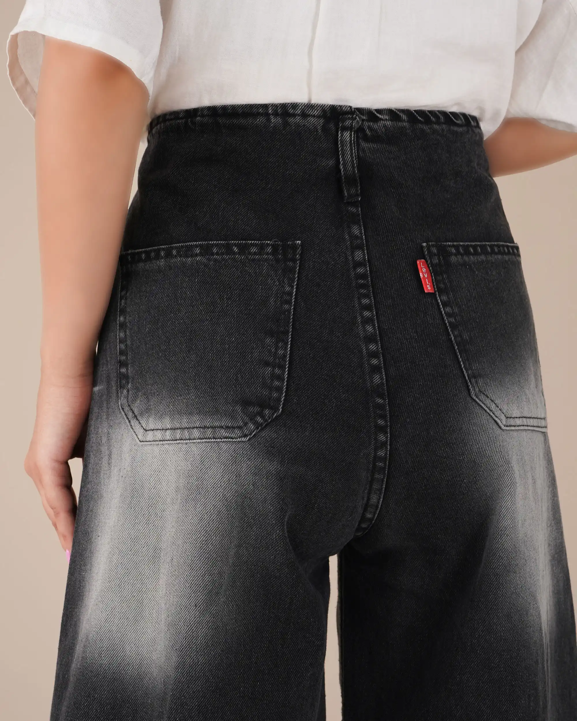 خرید شلوار جین فول بگ زنانه ذغالی شیک