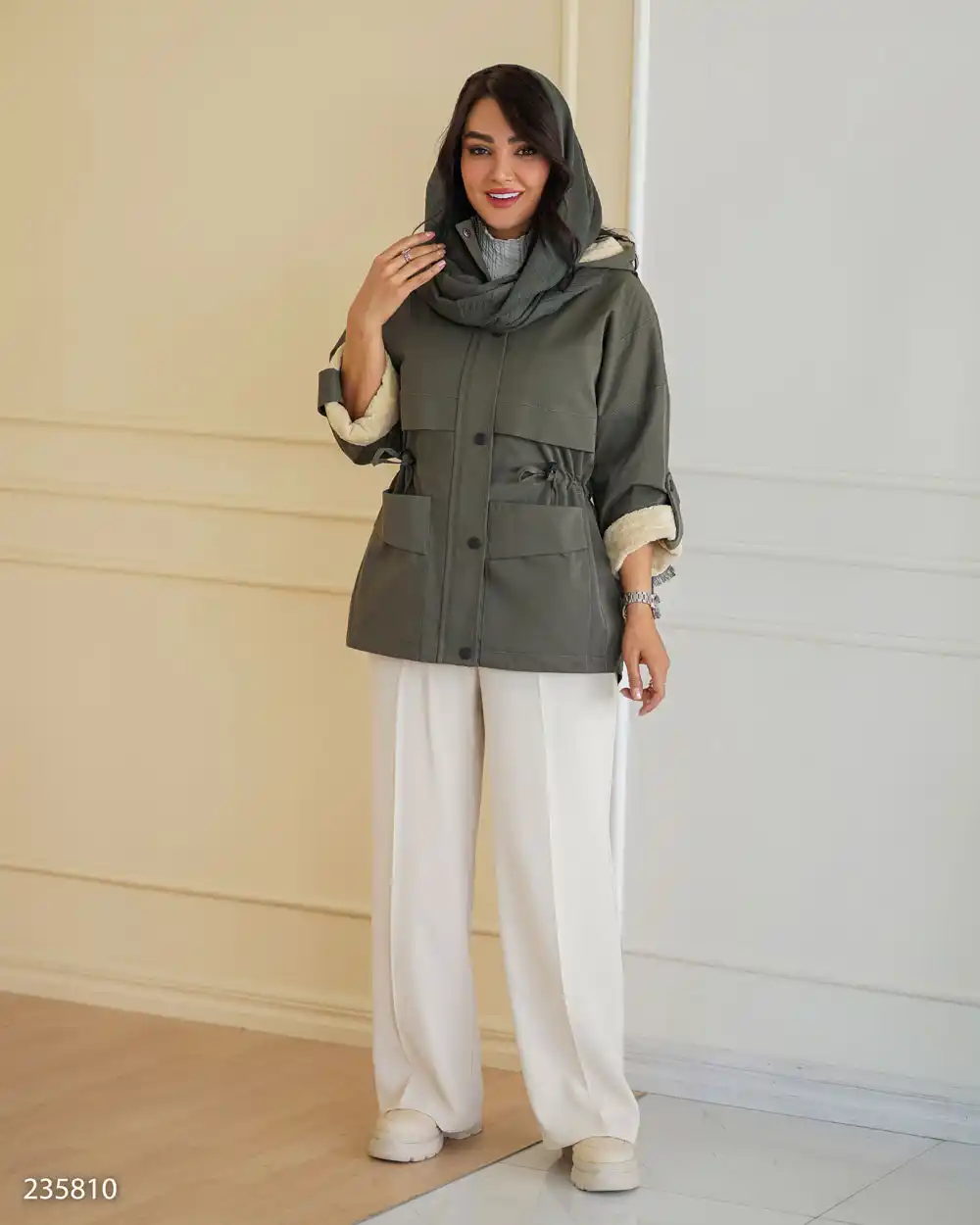 معرفی محصولکاپشن کتان tc آستر پولیش کمر گت دار آستین پاگون دار کلاه دار کلاه جدا نمی شود پشت کار حلالی جیب کاربردی بسته شدن زیپ و دکمه مدل راحله فری سایز دارای چند رنگ