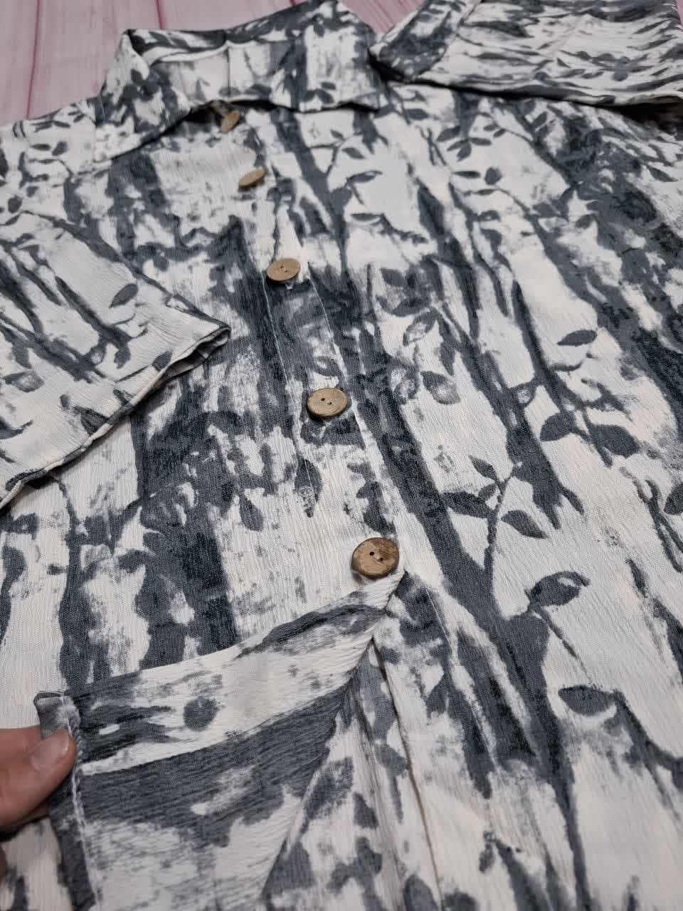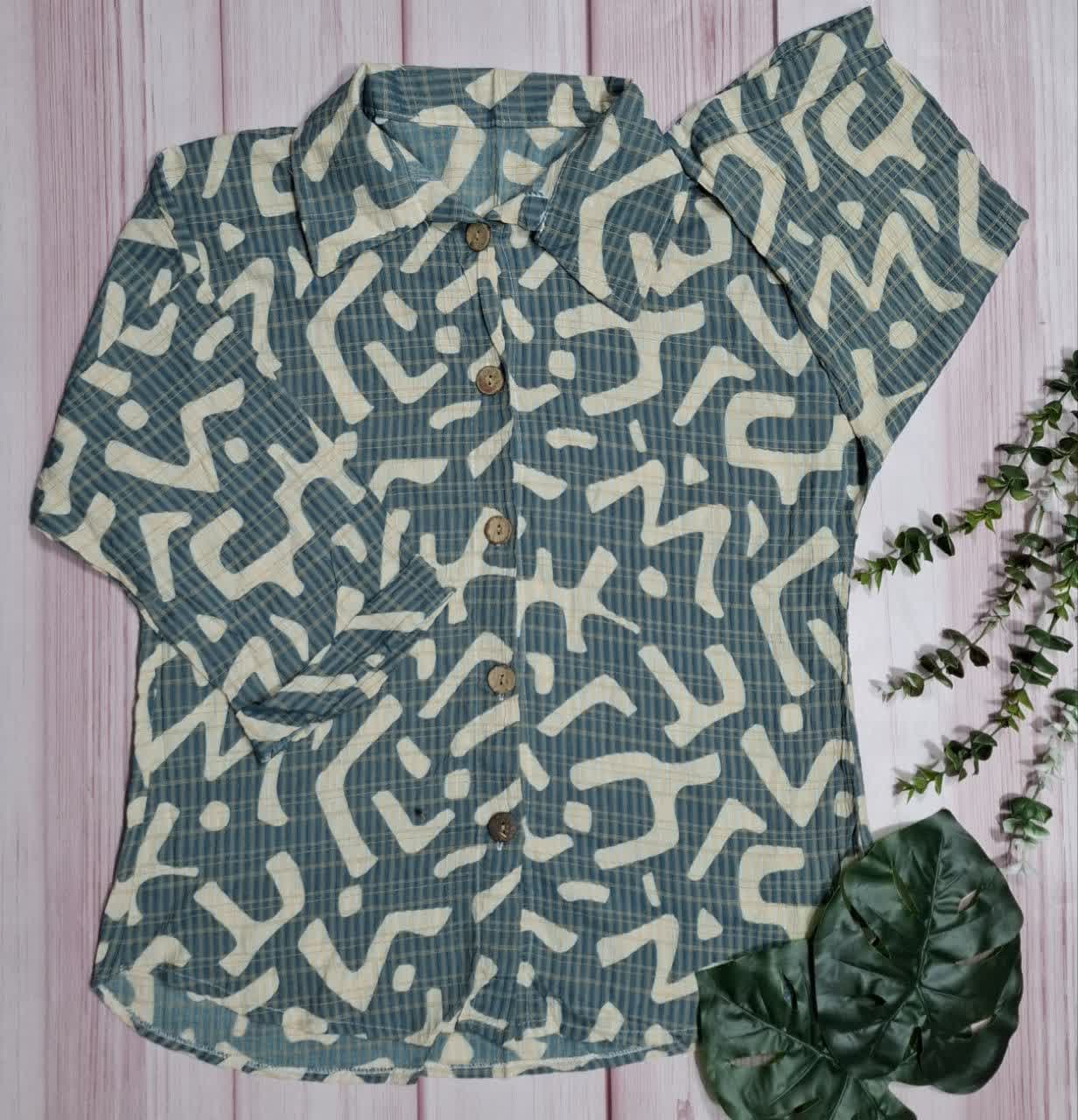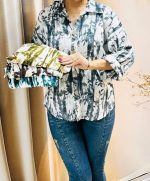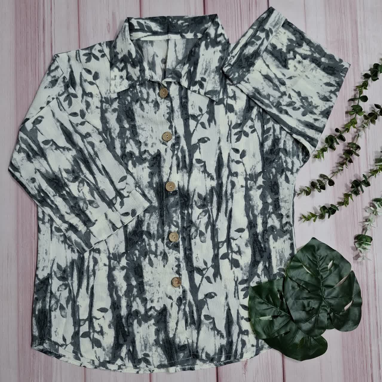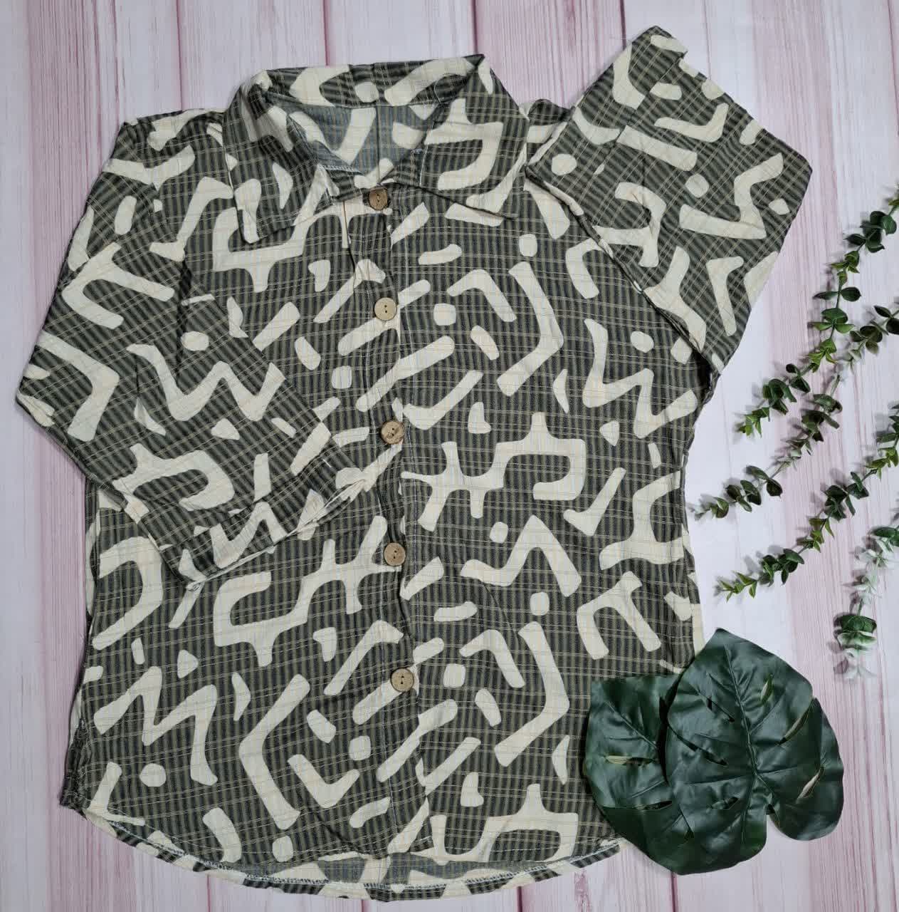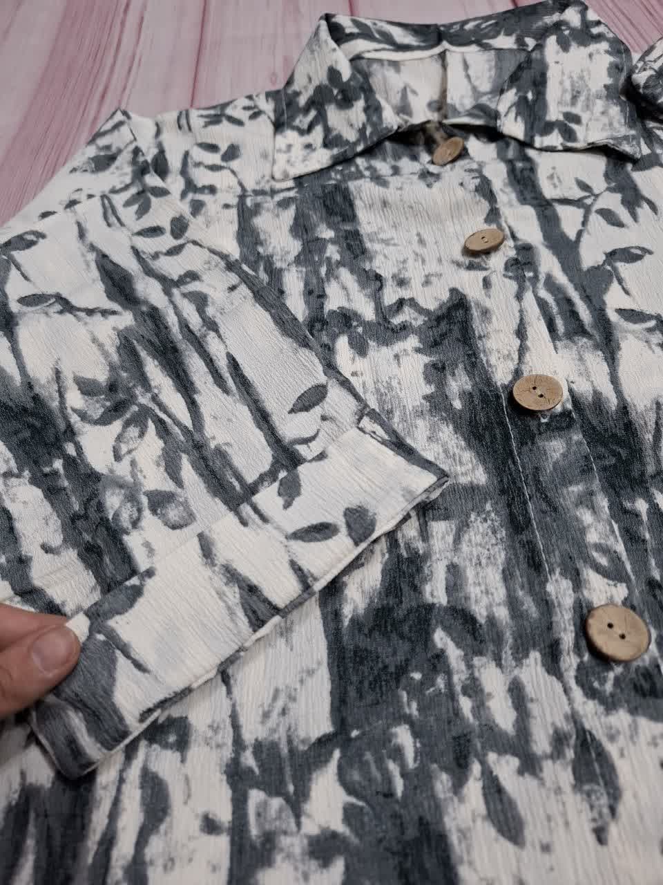 نمونه ای از شومیز طرح دار دکمه چوبی زنانه😍