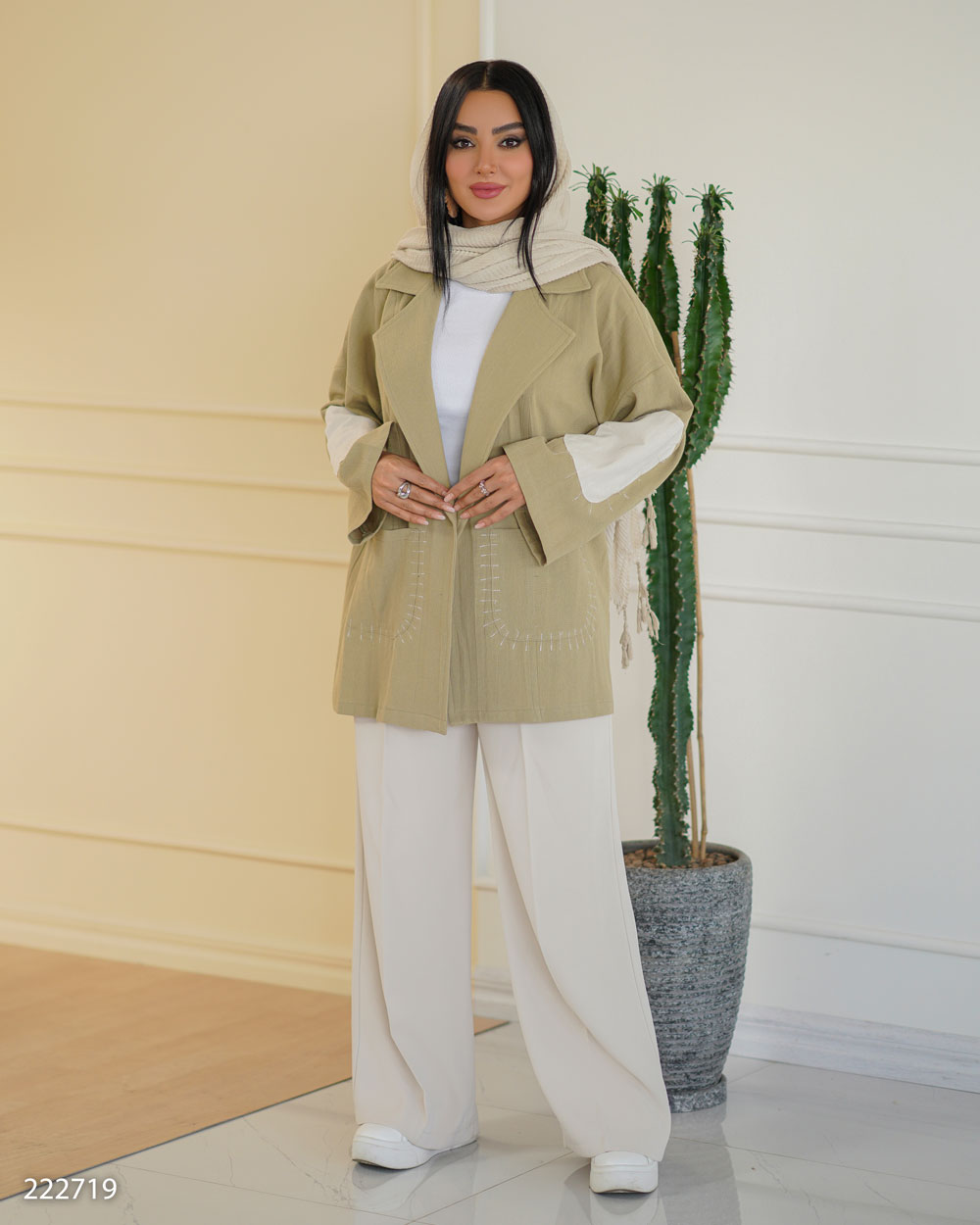 معرفی محصولمانتو لینن روما شسته شده یقه انگیلیسی آستین و جیب بخیه دوزی مدل سرنا داری دو سایز چند رنگ