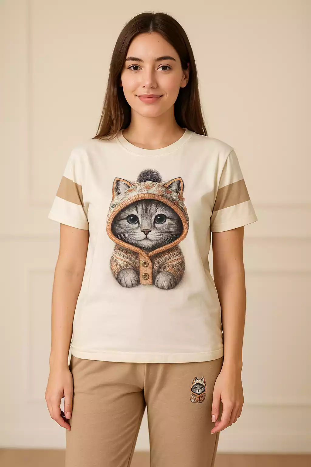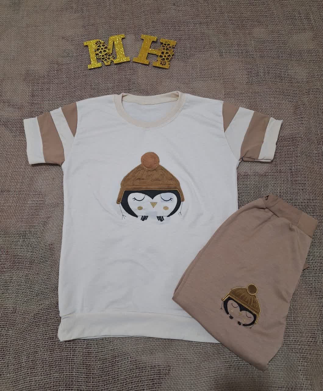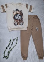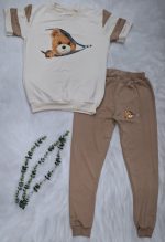 ست تیشرت شلوار کرم نسکافه ای مدل نازپوش