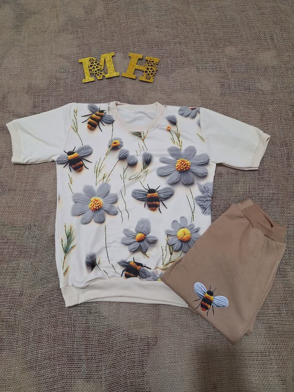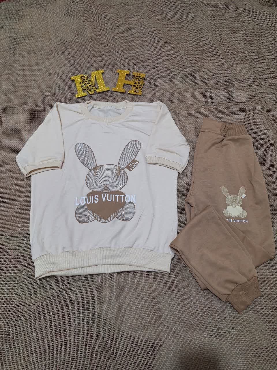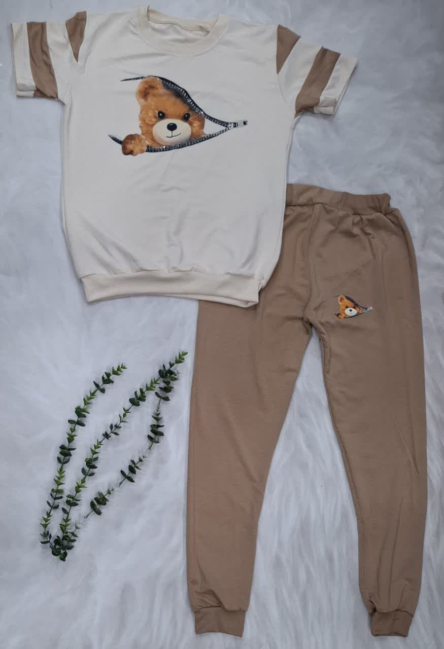 ✅ست تیشرت شلوار کرم نسکافه ای زنانه/دخترانه 😍