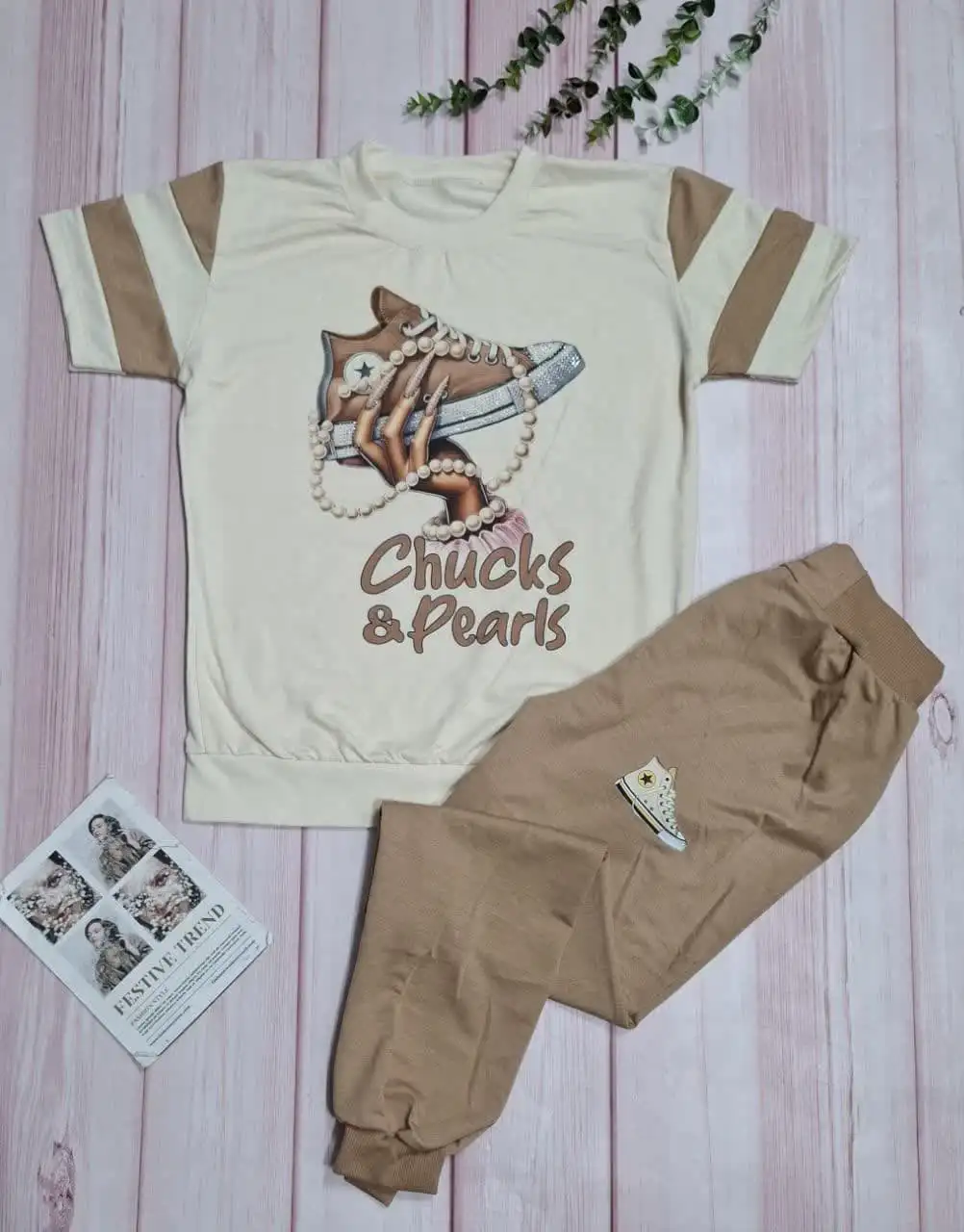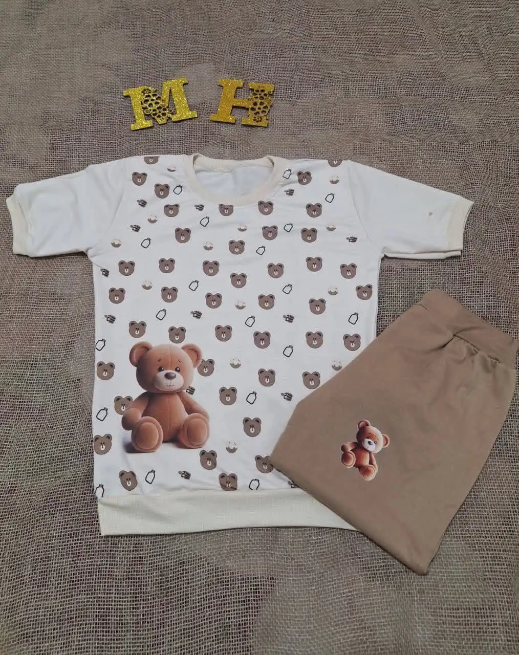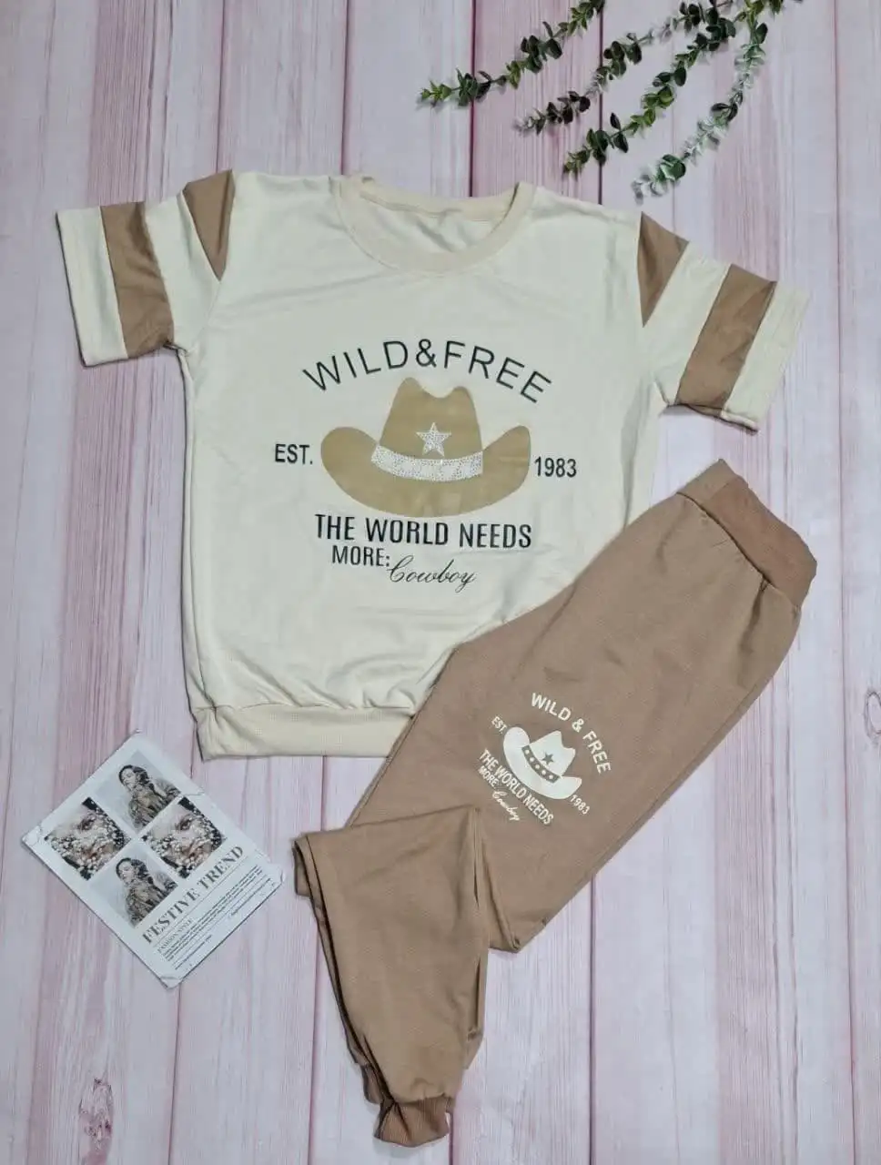 تیشرت شلوار کرم نسکافه ای زنانه/دخترانه مدل نوشا کد 117