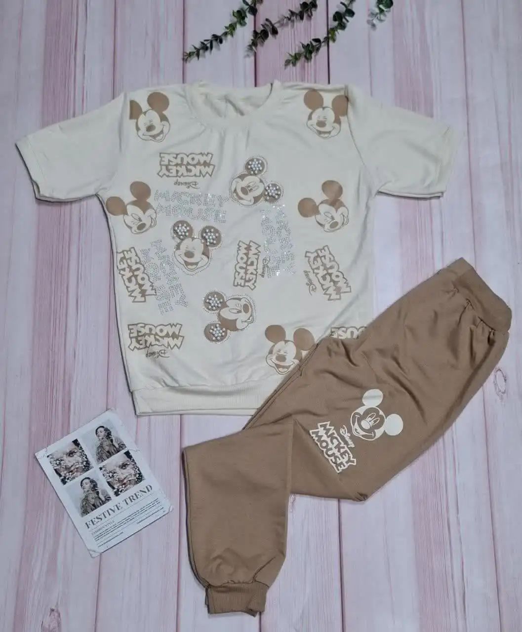 تنخور شیک تیشرت شلوار کرم نسکافه ای زنانه/دخترانه 😍